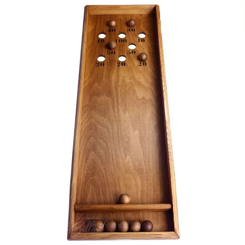 Un jeu de fabrication artisanale où le but sera de loger les boules de bois dans les meilleurs emplacements pour marquer le plus haut score.